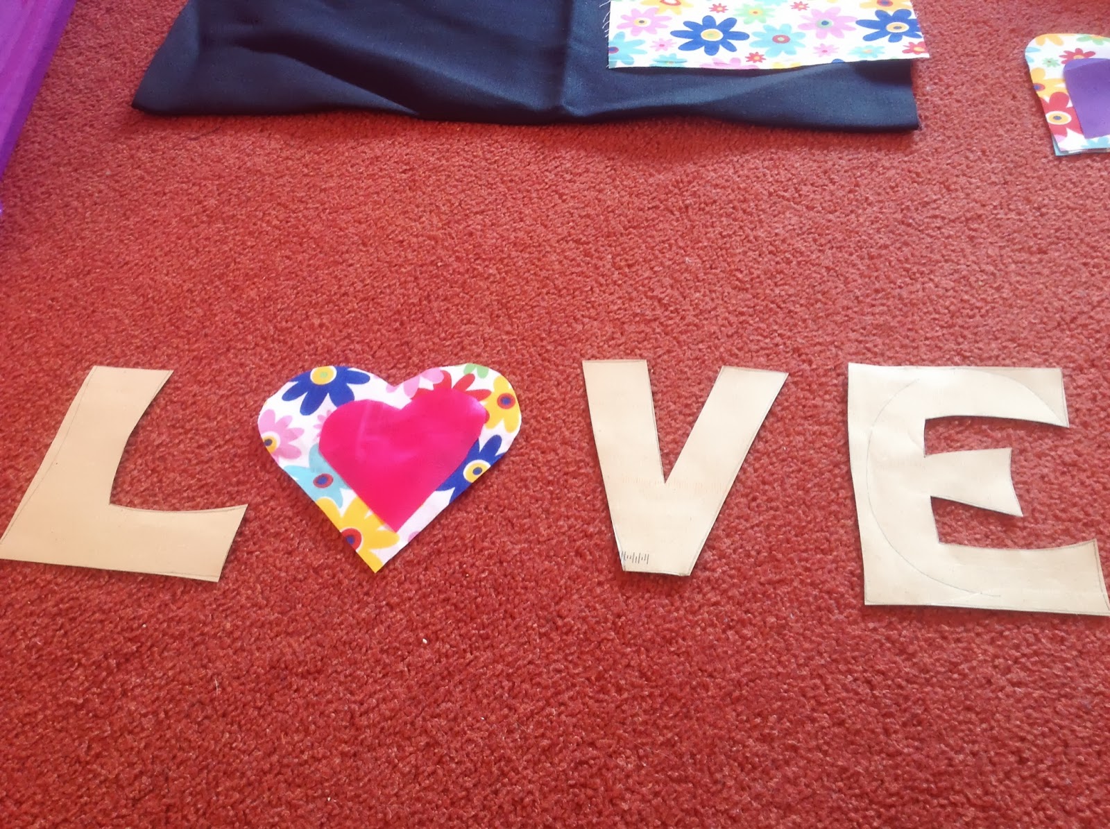 Use this to cut out the pattern on a contrasting material of your choice. I've chosen two different patterns - a beach hut and LOVE.